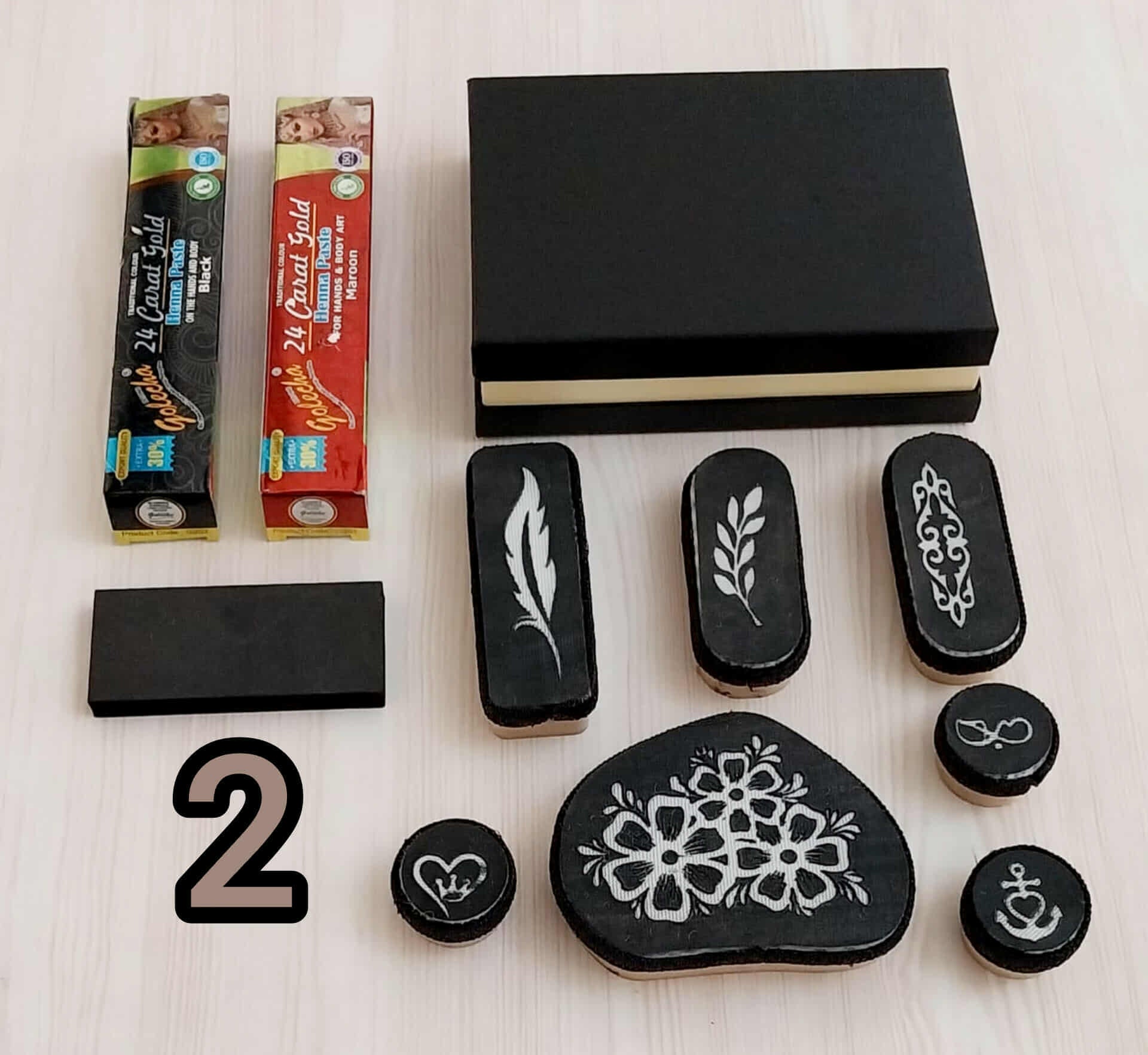 البكج مكون من 10 قوالب بالاضافة الى الحنة;